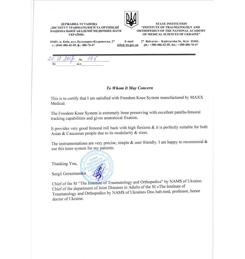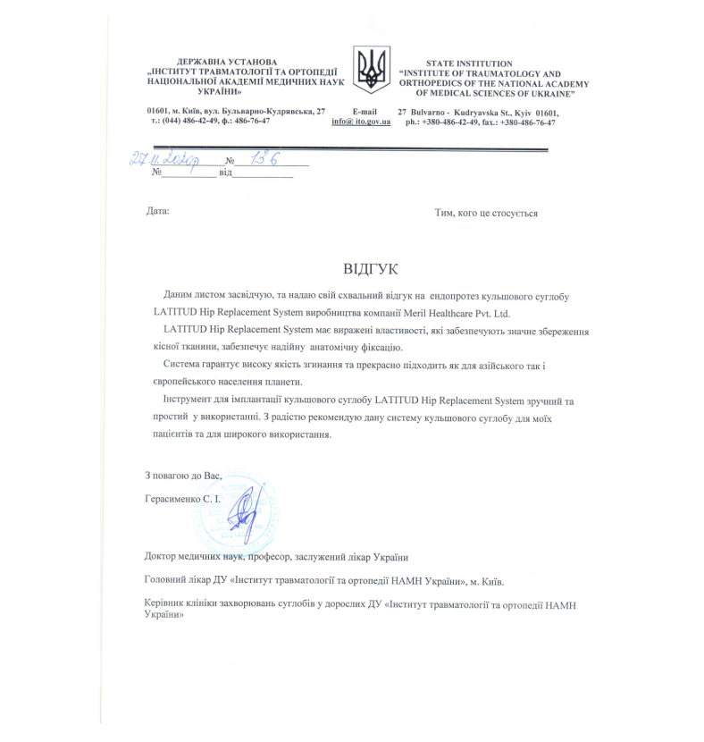 National Institute of Traumatology and Orthopedics Academy of Medical Sciences of Ukraine.