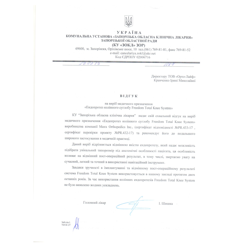 Zaporizhia Regional Clinical Hospital of the Zaporizhia Regional Council.